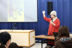 初日は午前10時半から、真珠まりこさん(東京)による絵本「もったいないばあさん」のお話会を開催。約60人の家族連れが参加し、昔ながらの知恵で食べ物などを大切にする「もったいないばあさん」の物語に耳を傾けた。