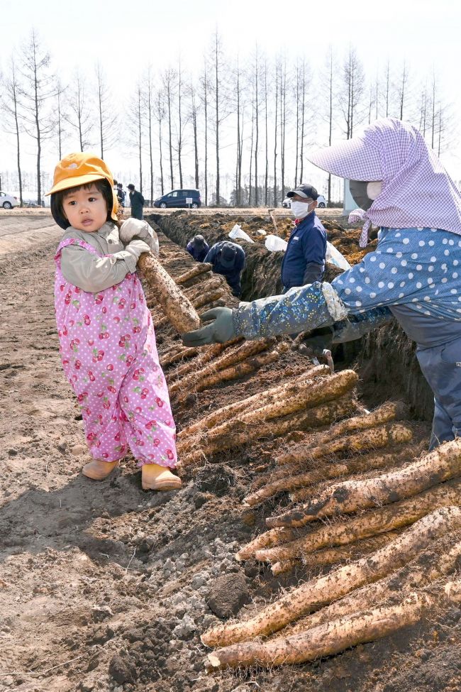 JA帯広かわにしによると、今冬の帯広市は積雪が遅く、強風による被害も確認されたが、気温は下がりきらず凍結はナガイモの「首」に見られる程度という。八代さんは「越冬したナガイモは甘みが増し、おいしい。多くの消費者の手に渡ってほしい」と話していた。(松崎篤嗣)