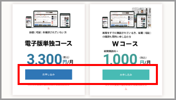 「購読のお申し込み」で、申し込み希望コースの「お申し込み」ボタンを押します。