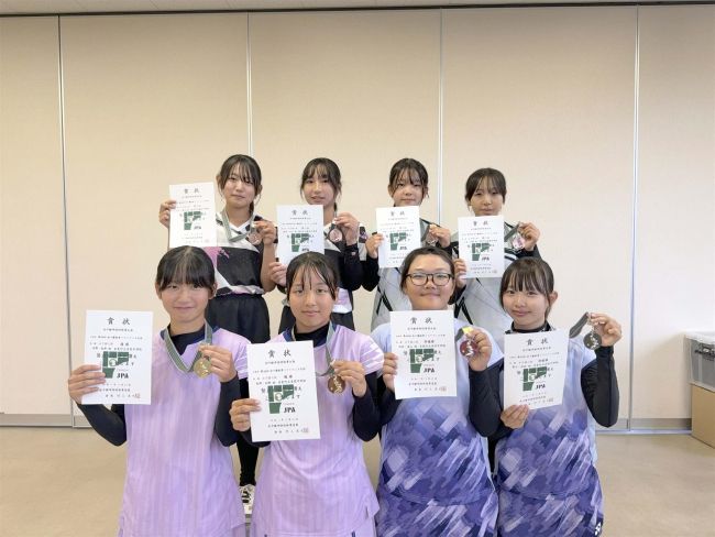 女子個人戦上位入賞者。水野姫愛・牧野莉沙組(前列左端・同左から2人目)は団体戦でも優勝し2冠となった
