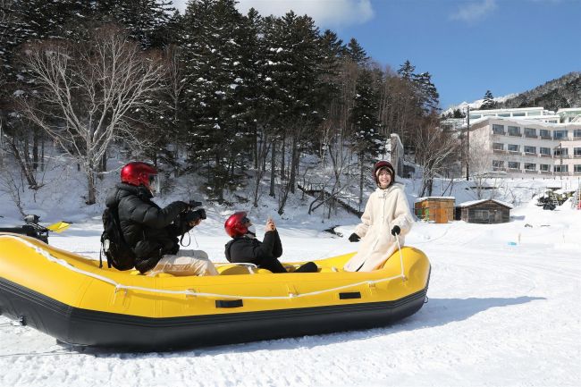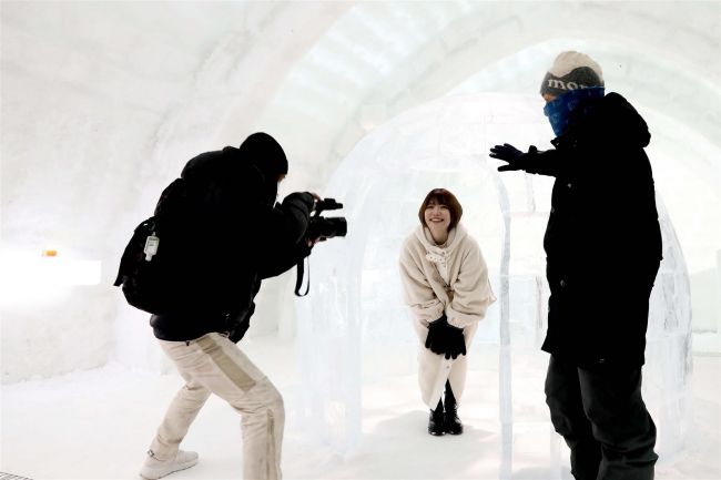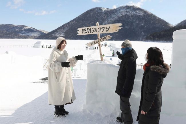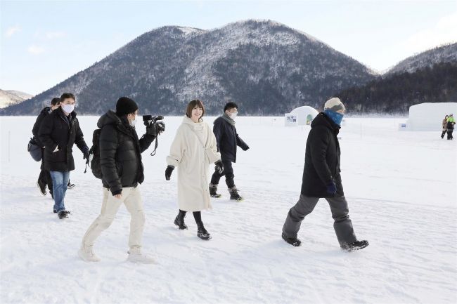 鹿追町の「しかりべつ湖コタン」を訪れた羽柴さん(11日、十勝観光連盟提供)