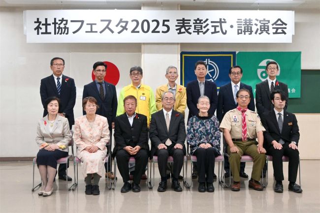 畑中会長(前列左から2人目)から表彰状を付け取った個人や団体代表