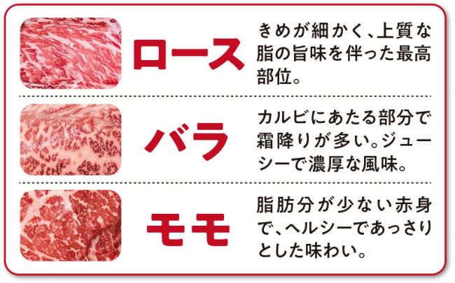 目指せ全部位制覇!?3種類の中からお好みの部位を選べます。