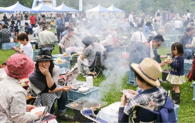 会場には約200台の焼き台がずらりと並び、来場者は後片付けなどの手間なく、十勝和牛の焼き肉を楽しめる。食材の持ち込みは不可だが、会場内でドリンクやおにぎりも販売する。