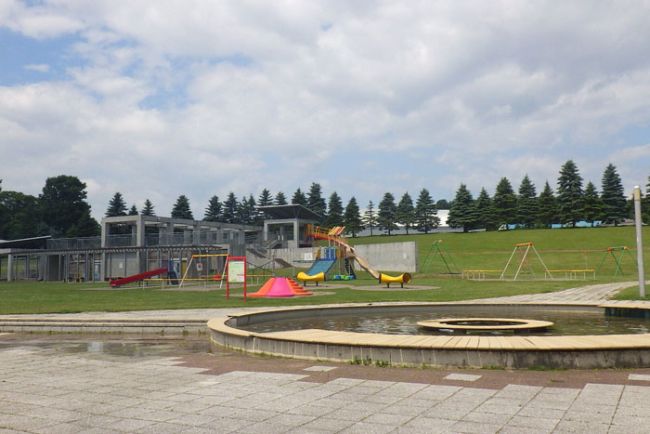 遊水池や遊水路が設置され、目玉は大型の親水滑り台。幼児向けの滑り台もあるのでぜひ利用して。ほかにも40mの「ローラースライダー」をはじめとする遊具、バーベキューハウス、パークゴルフ場など、遊び場が盛りだくさん。
