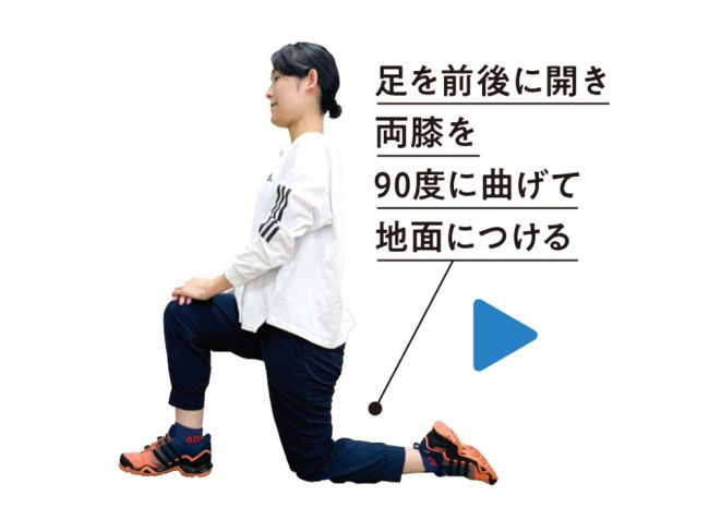 首・肩・腰・膝・足首に負担がかからないフォームを意識しよう。背中が丸まると、骨盤が後傾し膝の位置がブレ、膝・足首に負担がかかります。けがをしないためにも、しっかり前を向いて胸を開くことを意識してみよう。