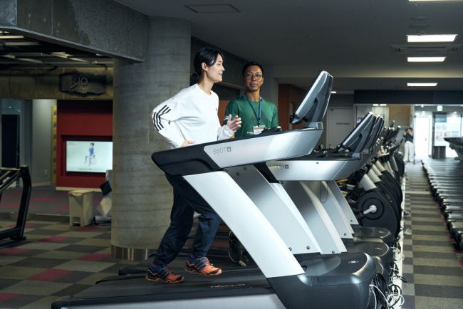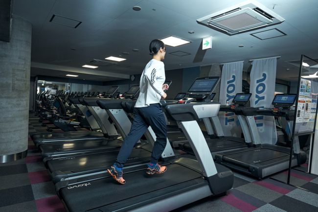 BIOのランニングマシンでは心拍数を測りながら走れるため、自分のペースをつかみやすい。