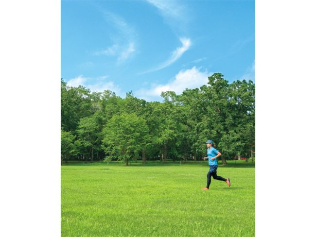 ランニングフォームを意識しながら走ってみよう。ウオーキングから徐々にスピードを上げて自分のペースをつかんでいこう。長距離のマラソンでは、安静時と息が上がる程度に走った時の中間くらいの心拍数を目安にして。