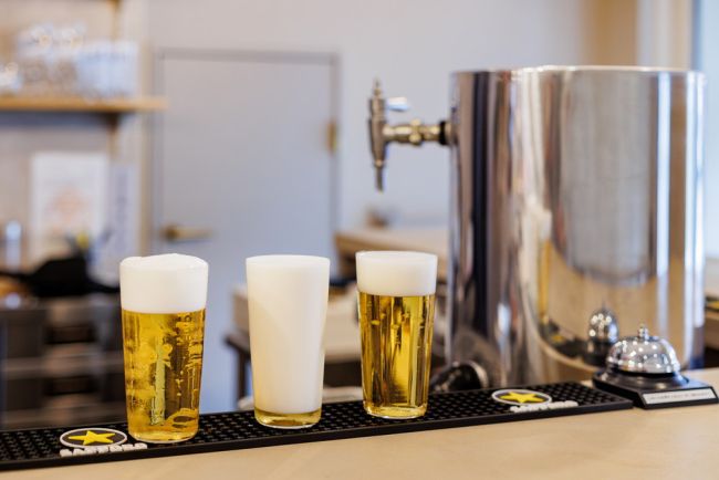 同店でまず試してほしいのがキリっと爽快な飲み心地の〈1度注ぎ〉750円。昭和のビアホールで提供されていた伝統的な注ぎ方だ。そのほか、麦の香りが引き立つ〈2度注ぎ〉や濃密な泡とマイルドな味わいの〈3度注ぎ〉などすべて飲み比べたくなる。十勝での伝統のビールの復活に胸を躍らせるちゃんみ団員であった。