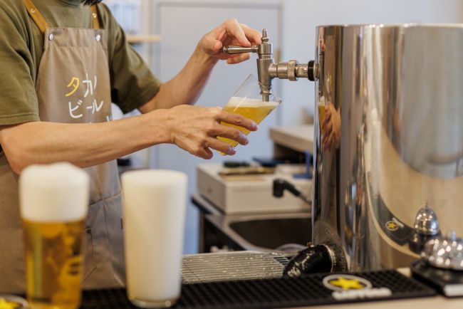 今年の7月にオープンしたタカノビールスタンドでは昭和初期まで活躍していたサーバーの復刻版でビールを注ぐ。提供されているのはサッポロ黒ラベルのみ。驚きなのは、このサーバーと注ぎ手の技術によって、5通りの味を楽しめるということだ。