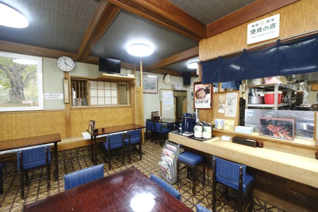 道の駅「あしょろ銀河ホール21」からほど近い町のそば屋。のれんをくぐると話し好きな店主・真鍋雅美さんが気さくに出迎えてくれる。