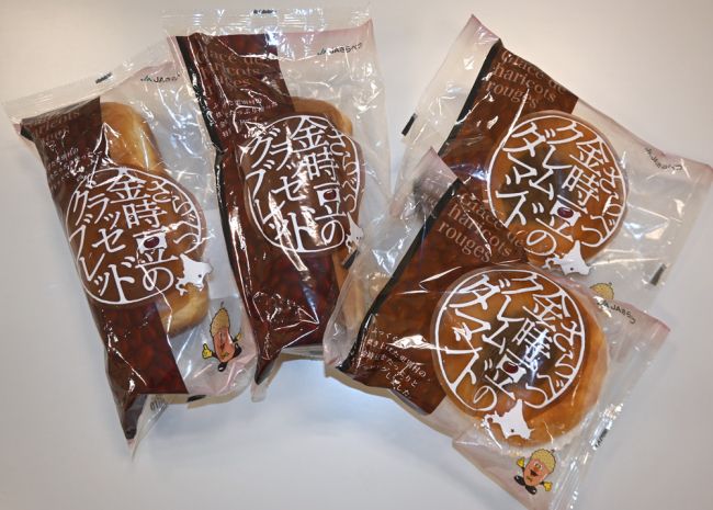 作付面積・生産量ともに日本一の特産品、金時豆を使用。しっとりとした生地で金時豆を包んだ〈クレムダマンド〉と、ラム酒とブランデーで煮た金時豆を加えた〈グラッセブレッド〉を用意する。