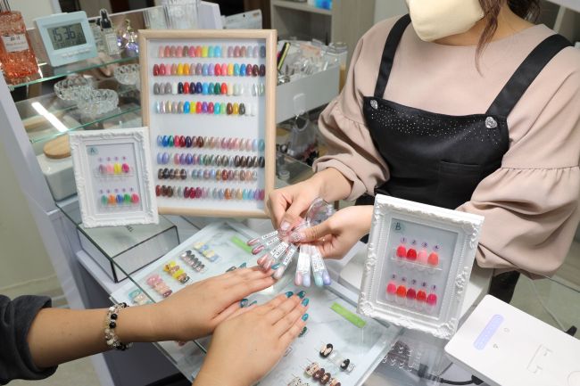 日常生活に溶け込むシンプルなワンカラーネイルから華やかなグラデーションネイル、輝きを放つマグネットネイルなど200種類以上のネイルカラーや、豊富なネイルパーツを取りそろえ自由にカスタマイズし、オリジナリティーあふれるネイルアートに仕上げます。華やかな足元を演出するフットネイルも行なっているので、こちらもぜひ体験してみてください。多彩なネイルカラーであなただけの指先を実現します。